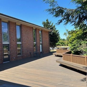 Our 2,148 sq. ft. Community Room can host up to 152 guests for business or social events. 5 ft. rounds, classroom and banquet chairs are available to customize your layout. The Community room comes with access to a full kitchen, two newly refurbished decks and outdoor space.